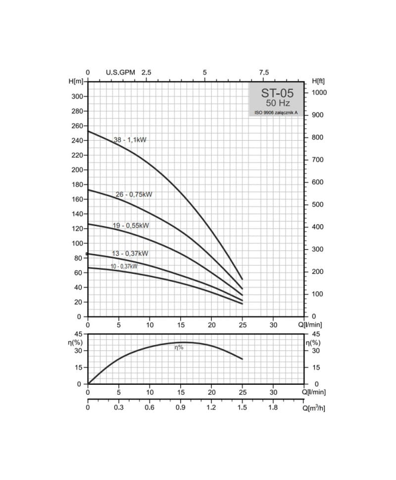 Tabela wydajności pomp Stairs ST-05: