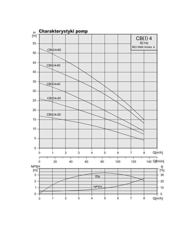- Pompa CB 4-50 pod względem specyfikacji technicznej i wydajności odpowiada pompie Grundfos CH 4-50