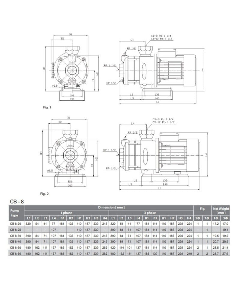 - Pompa CB 8-20 pod względem specyfikacji technicznej i wydajności odpowiada pompie Grundfos CH 8-20